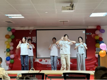 伴随欢快的旋律,“语你同行”志愿服务队带来的手势舞精彩亮相。志愿者们以充满活力的舞姿和真诚的笑容,迅速吸引了孩子们的注意力。小朋友们围坐一旁,跟着节奏拍手、摆动身体,台上台下互动热烈,现场氛围逐渐升温。这支精心编排的舞蹈,为孩子们送上来真挚的节日祝福,也拉开了整场活动的序幕。