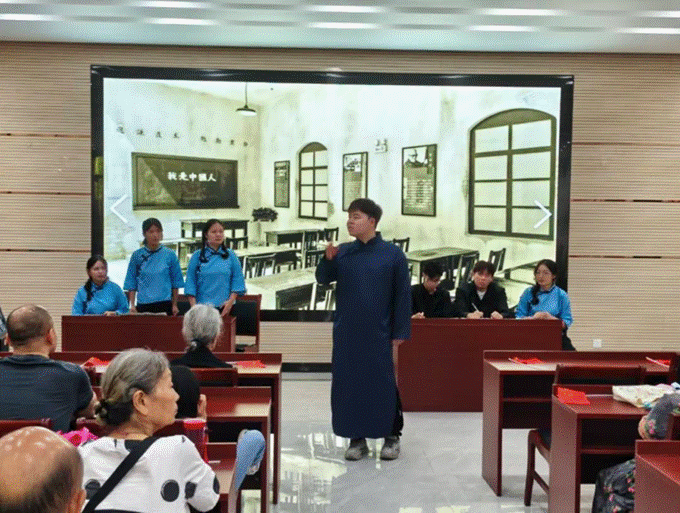 活动在庄严的国歌声中正式启幕,社区活动中心内中老年居民与青年学子全体肃立。随后的原创情景剧《五四风云》将时空拉回1919年,志愿者们身着民国学生服饰,以沉浸式表演再现五四运动历史场景。剧目通过《新青年》杂志传递、巴黎和会新闻解读、学生集会演讲三个典型片段,完整展现青年群体从思想觉醒到投身爱国运动的全过程。舞台背景配合场景转换,当演员高声喊出“为祖国收回主权尽一份力”的台词时,现场多位长者频频颔首。